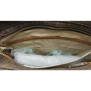 New Michael Kors Signature Jet Set Travel Large Messenger Bag, Brown/Gold. Exterior pocket, 3 Interior Open Pockets, Interior Cell Phone Pocket, Adjustable Strap. Logo Medallion Keychain, Logo. Beautiful Messenger bag. You save $$! 10" by 10" by 3".