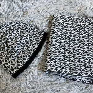 Michael Kors Signature Logo Black and White Scarf and Hat New in Box