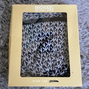 Michael Kors Signature Logo Black and White Scarf and Hat New in Box for sale