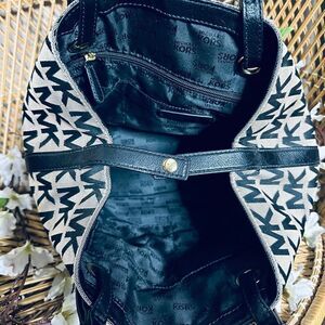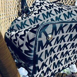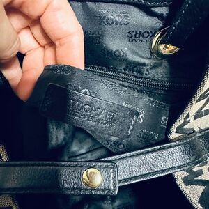 Michael Kors Signature Logo Canvas Tan Black Handbag Purse Gold Hardware Jet Set