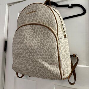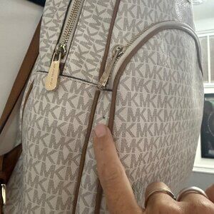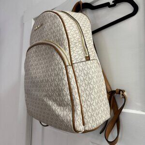 Michael Kors Signature MK Logo Backpack Beige/Brown Adjustable Straps Zip Closur