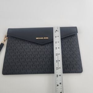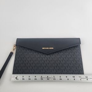 Michael Kors Signature Maisie Large Clutch Leather Envelope Flap Black