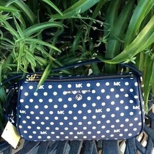 The Michael Kors Signature Pouchette is a stylish and adorable accessory. Made of durable nylon, it is lightweight and water-resistant. The gold-tone hardware adds a touch of elegance. With a large exterior slip pocket and interior slip pocket, it offers convenient storage. It also features six credit card slots and comes with an 8-inch strap. This pouchette is incredibly cute and brand new with tags (NWT).