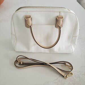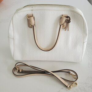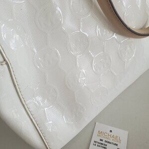 Michael Kors Signature White Patent Large Satchel Crossbody Beige Strap Handbag