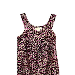 Michael Kors silk Leopard / Cheetah print sleeveless shift dress in Khaki beige, pink and black colors. Scoop neck, lightweight, fun dress. Excellent, like new condition.