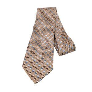 Michael Kors Silk Tie Men’s 60” Gold Blue Geometric Modern Preppy Classic New