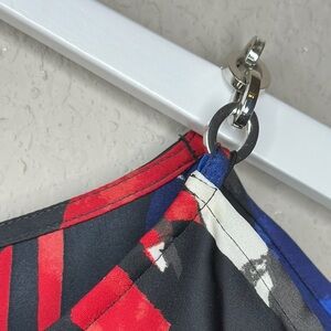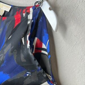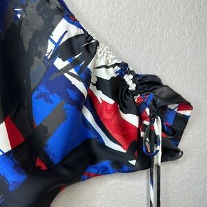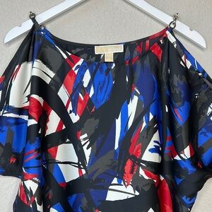 Michael Kors Silky Red, White & Blue Cold Shoulder Chain Detail Blouse Size S