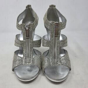 Michael Kors Silver Glitter T-Strap High Heel Sandals Womens Size 7