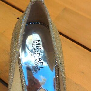 Michael Kors Silver Gold Open Toe Glitter Heels - Size 10 Great Condition