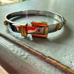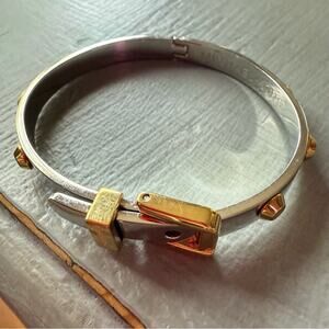 Michael Kors Silver & Gold Tone Buckle Hinged Bangle Bracelet