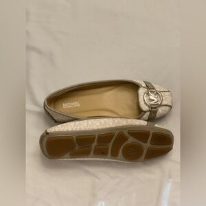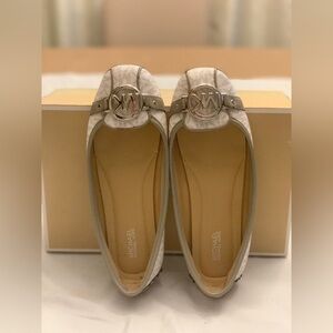 Chic silver loafers with iconic MK logo. Perfect blend of style and comfort.