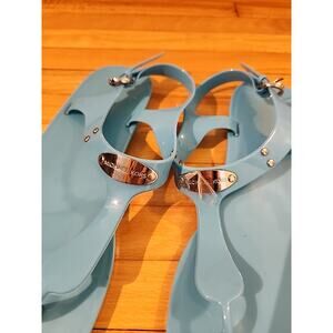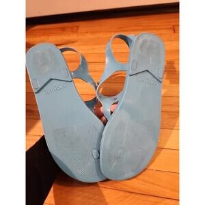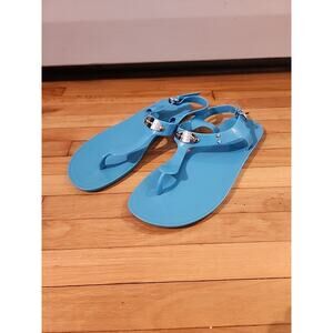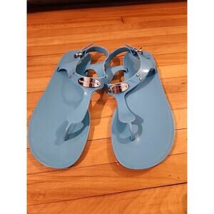 Michael Kors Silver Logo Jelly Thong PVC Blue Sandals Women's Size 9