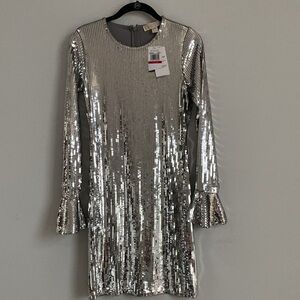😍Michael Kors Silver Sequin Sheath Mini Dress with Bell Sleeves XS