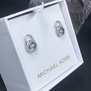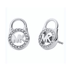 Brand New With Tags and in the Box Michael Kors Silver Tone MK monogram Padlock Logo Earring Studs with Sparkling Pave crystals. Stainless Steel. Post back closure. These Michael Kors earrings are designed for everyday life. Synonymous with timelessness and a jet set lifestyle. Comes in Original Michael Kors Decorative Box.