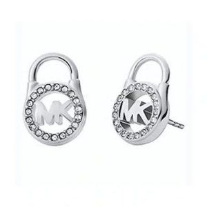 Michael Kors Silver Tone MK monogram Padlock Logo Earring Studs with Sparkling Pave crystals. Stainless Steel. Post back closure. These Michael Kors earrings are designed for everyday life. Synonymous with timelessness and a jet set lifestyle. Comes in Original Michael Kors Decorative Box.