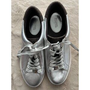 Michael Kors Silver Womens Sneakers W/ Monogram Heel & Logo Accents Size 8.5