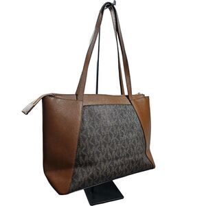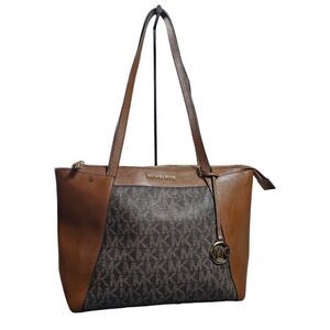 Michael Kors Sinclair Large Logo Tote Bag Brown Canvas Leather 38H9CN2T2B Flaw