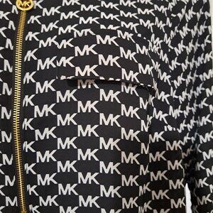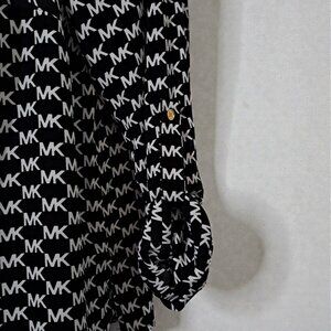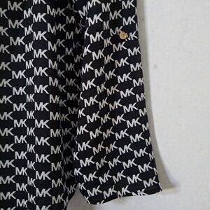 The Michael Kors ¾ Sleeve Black & White Logo Top offers a chic, modern style perfect for versatile wear. Crafted from a comfortable blend of fabrics, this top features bold black and white color-blocking and the iconic Michael Kors logo pattern across the front. The ¾ sleeves provide just the right amount of coverage for transitional seasons, making it ideal for layering or wearing on its own. Pair it effortlessly with jeans, skirts, or dress pants for a polished, designer-inspired look. New with tag.