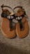 Elegant black straps with a tan footbed. Sleek design for versatile wear. see pics - peeling on one shoes footbed which is hidden while you wear them