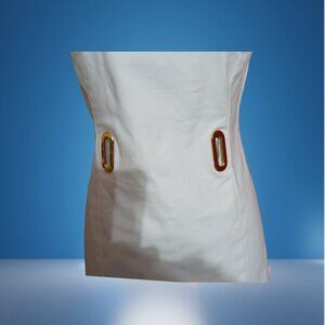 Color off white or ivory with neck gold accent engraved with Michael Kors name and gold metallic belt loops ( belt not included) Back slit