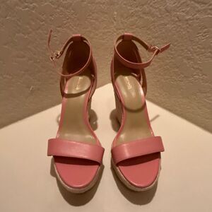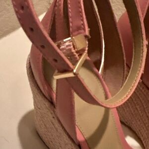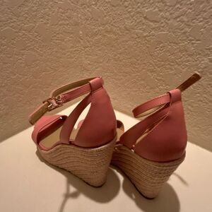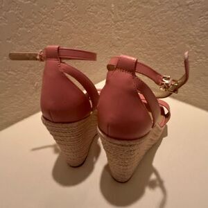 Michael Kors Size 9.5 Kimberly Espadrille Wedge Sandals Pink Preppy Coastal
