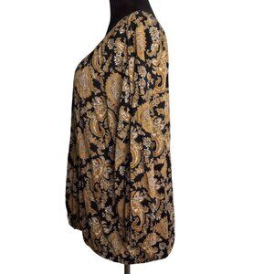 Michael Kors Size L Blouse Womens Paisley Print Black Orange Peasant Top