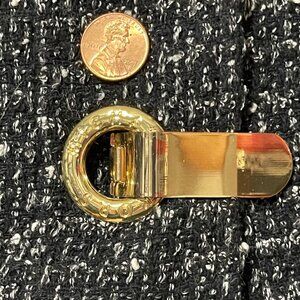 This black and white tweed cropped jacket combines classic elegance with modern sophistication. The gold hardware accents enhance its refined design, making it a polished choice for professional settings.