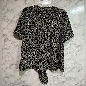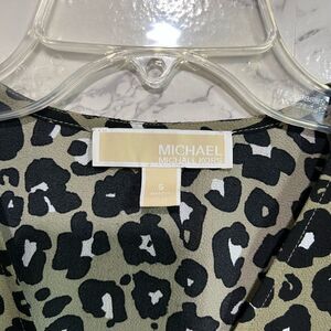 Michael Kors Size S Green & Black Animal Print Zip Front Tie Hem Blouse Top