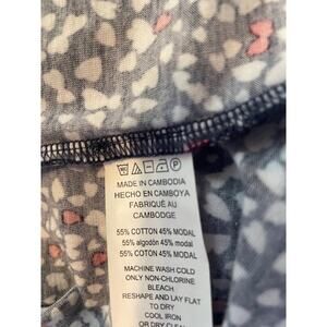 Blouse is black with white and red pattern. 55% cotton / 45% modal