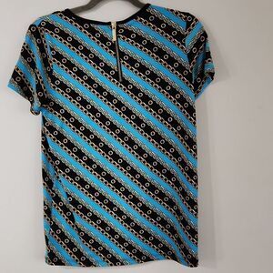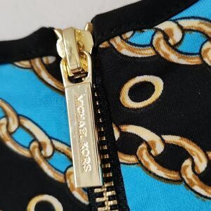Michael Kors Size Xs Top Short Sleeve Blouse Zipper Back Chain Link Print