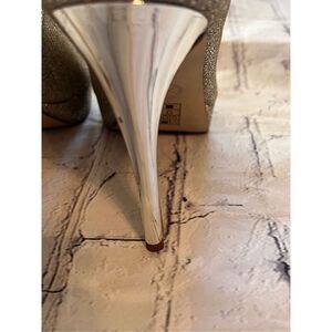 Michael Kors Size 8.5 Gold Sparkle Glitter Platform Peep Toe Pump Heels Bridal