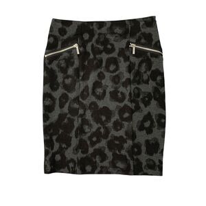Michael Kors Skirt Women 2P Petite Gray Black Leopard Side Zip Pockets Lined