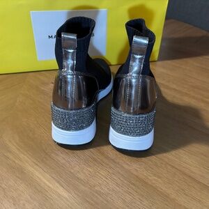 Michael Kors Skyler Embellished Metallic Stretch Knit Sock Sneaker Black Size 10 Crystal embellished low wedged heel sneaker sock only worn once practically new.