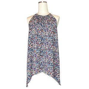 Michael Kors Sleeveless Floral Top Small Hanky Hem Blouse Navy Multicolor Spring