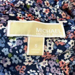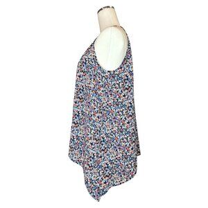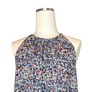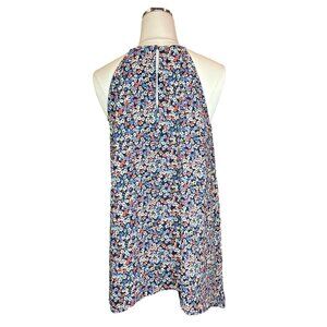 Michael Kors Sleeveless Floral Top Women's Size Small Hanky Hem Blouse Navy Multicolor Spring Summer
