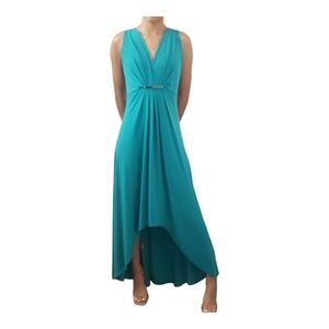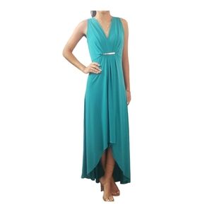 Michael Kors Sleeveless Long Maxi High Low Design Teal Cocktai Dress Size Small