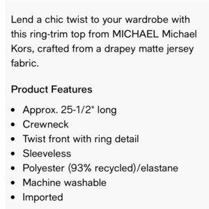 🌷Michael Kors Sleeveless Ring-Trim Top with Gold detailing, Size: XL