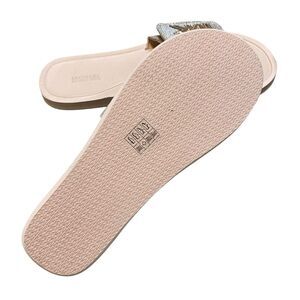 Michael Kors Slide Sandals Women 10M Silver Logo MK Glam Beach Resort Casual