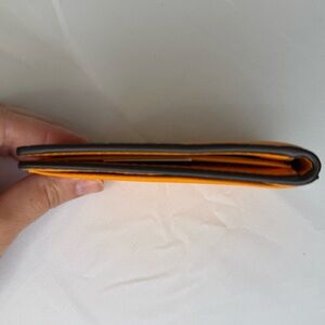 Stylish and compact Michael Kors slim bifold wallet in a rich pumpkin orange pebbled leather. This sleek, modern design is perfect for carrying essentials with a pop of color that feels both bold and timeless.