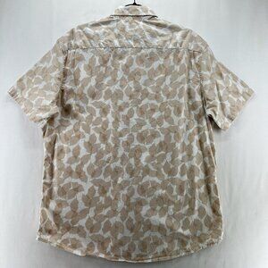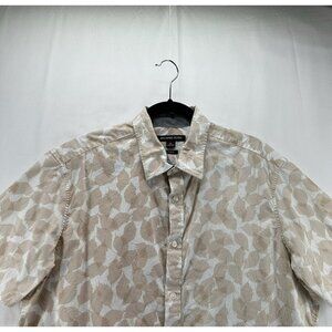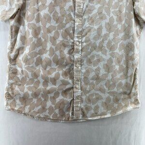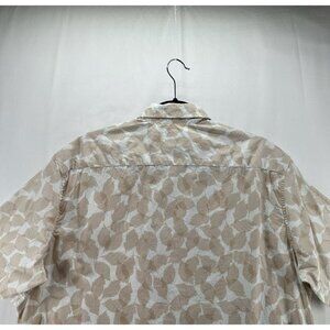 Michael Kors Slim Fit Shirt Men XL Button Up Short Sleeve Leaf Print Beige White
