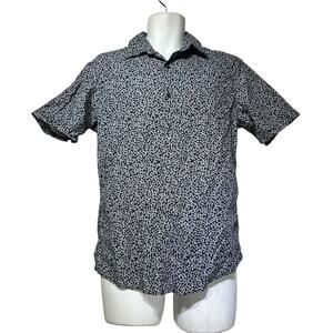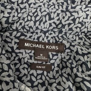 Michael Kors Slim Fit Short Sleeve Button Shirt Navy Abstract Print Size M