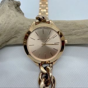 Beautiful Michael Kors rose-gold tone watch is absolutely stunning. No signs of wear. Running battery. MK3223.
