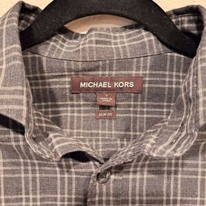 Michael Kors Slim fit long sleeve shirt, 100% cotton, plaid grey mens size small