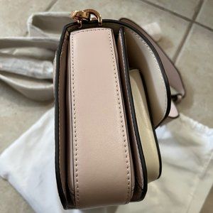 I used it probably once and it's been sitting in my closet all these years. Practically brand new. Smooth leather. Rose gold hardware that is very rare to find. I believe the official color is Ballet pink/white/fawn. Fawn is an earth tone mauve that's very soft and sophisticated. With 2 interchangeable straps. 1 shorter leather shoulder strap and and 1 longer web crossbody strap. Original dust bag. Back pocket. 1 front pocket for phone. Pinch lock closure. Internal zip pocket.