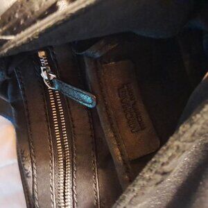 MK buttery soft black leather slouch bag with front snap pocket. Bag is in excellent used condition and measures 12"h x 13"w x 4"d. There is a zippered pocket inside as well as two open pockets. Bag has a snap closure.`