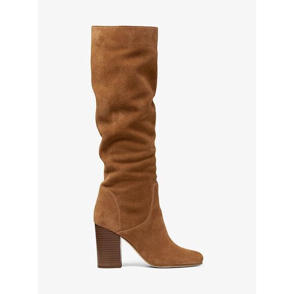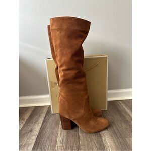 Michael Kors Slouchy Suede Round Toe Heeled Pull-on Leigh Boots Luggage Size 10 $275