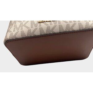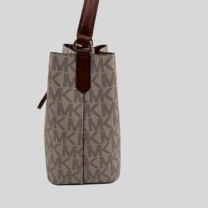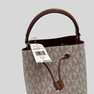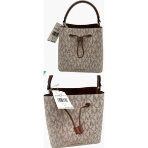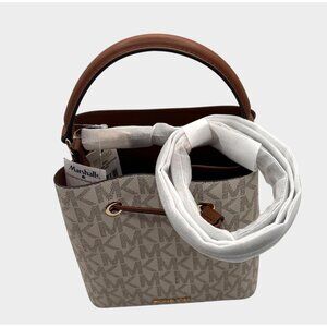 Michael Kors Small Drawstring Bucket Bag Vanilla/Brown Canvas Leather Logo