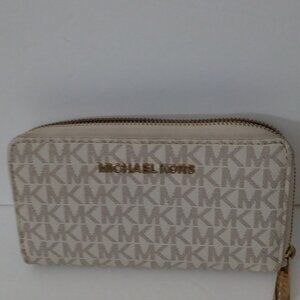 Michael Kors Small Jet Set Monogram Vanilla Zip around Wallet