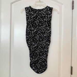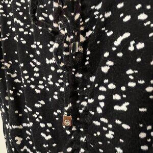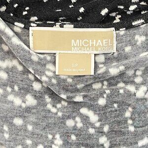 Michael Kors Small Knit Top Ruching V Neck Tie Sleeveless Black White Blouse