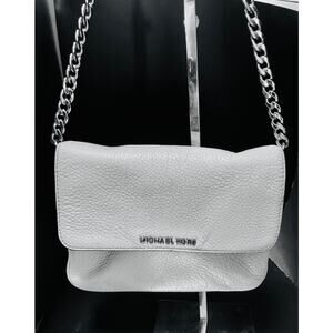 Michael Kors Small Light Grey Fulton Flap Closure Chain/Leather Strap